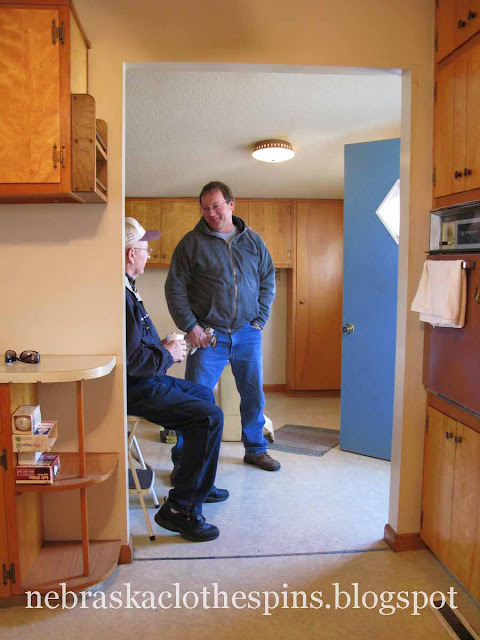 Dad's auction this past Saturday went off without a hitch. The weather was chilly in the 40's but the wind was not a factor. I thought the attendance a bit sparse but in the end the stuff all disappeared. Many things went cheaply. I spent $10 myself on a cordless drill & an old wooden chair my grandmother had given Dad for his garage. Now it sits in my garage. Dad's eyes were red rimmed at the beginning of the day, but he mingled & visited with people. Watched as some things sold but wasn't watching everything. In the end he was just relieved to finally have it over. "Sixty years together & we never threw anything away."